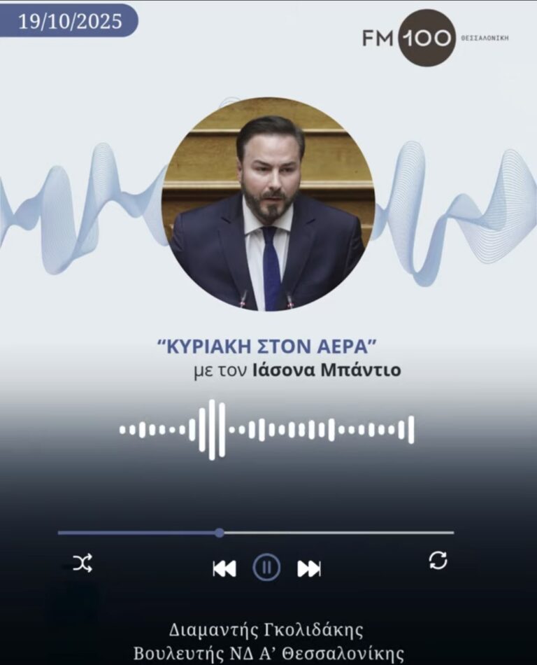 Δήλωση Διαμαντή Γκολιδάκη τη ημέρα του εορτασμού του πολιούχου Αγίου Δημητρίου ως εκπρόσωπος του Προέδρου της Βουλής των Ελλήνων